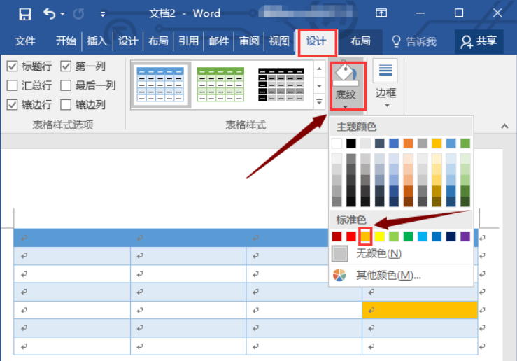 2、接着单击“设计”,操作如下图,选择其中一个表格样式。