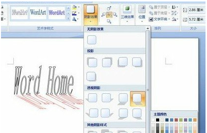 2、在打开的阴影效果列表中,为艺术字设置投影、透视阴影和其他阴影样式,其中每一种阴影效果根据阴影方向和阴影位置的不同有多种样式可供选择。
