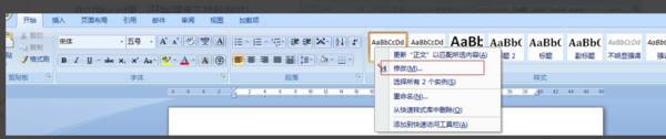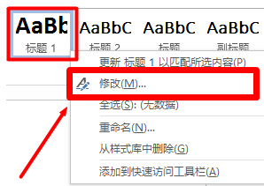 1, 在word里,[开始]菜单下找到[样式],选择其中一个标题样式,点击右键,选择[修改]。