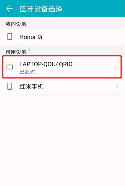 2、在蓝牙设置页面中,可以搜索到对方的蓝牙信号(前提是对方已开启蓝牙),找到并点击对方的蓝牙设备。