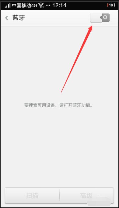 2、蓝牙的开关现在是灰色的,点击打开,打开之后会变成绿色,如下图: