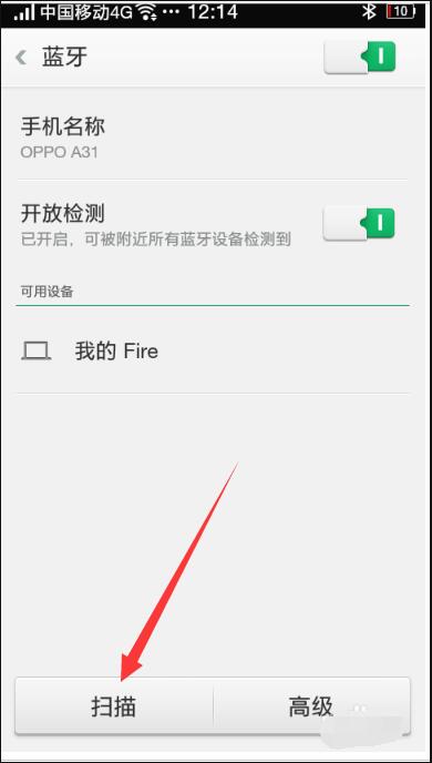3、蓝牙功能开启以后,现在进行蓝牙扫描,点击扫描,如下图: