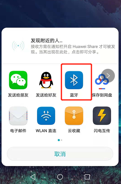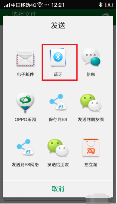 6、点击发送,然后选择发送到蓝牙,选择已经配对的蓝牙就可以传送到另外一部手机了。