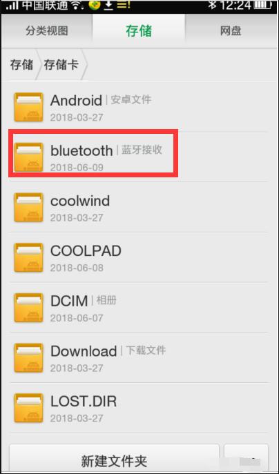 11、接收到的文件就会被保存在r2017主内存“bluetooth”目录下,如下图: