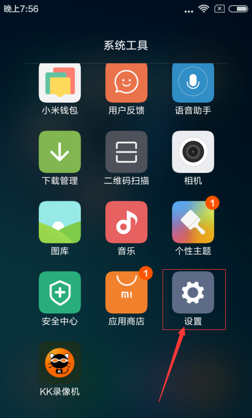 2、然后在系统工具文件夹下找到设置,如下图所示。