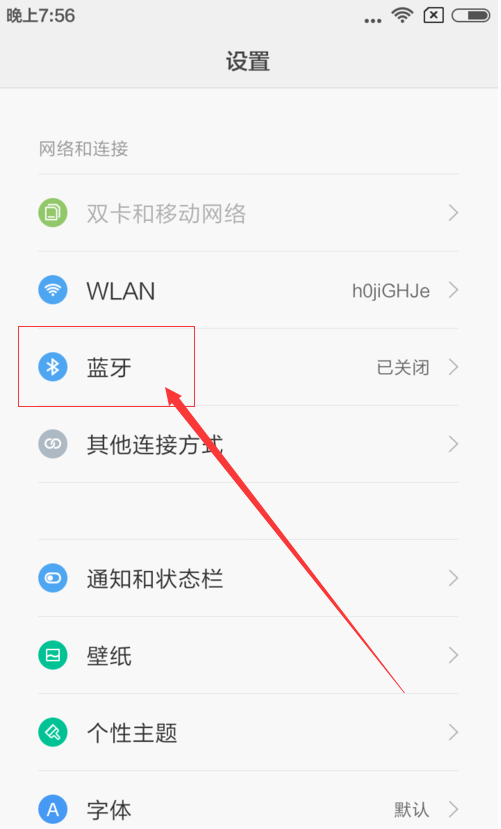 3、在手机设置下找到蓝牙,默认是关闭的,如下图所示。