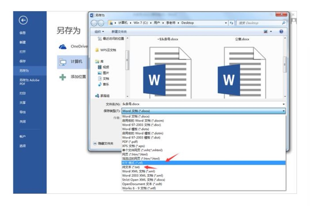 这种方法就是把损坏的WORD文档另存其它文本格式,比如RTF或TXT格式。