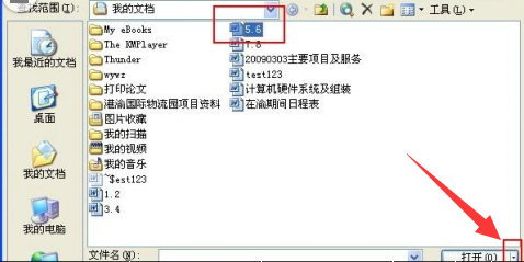 2、点击word软件左上角的【文件】-【打开】,找到已损坏的那个文件的路径,用鼠标点击一下它(注意:是单击,不是双击)。然后会发现右面红框里面有一个黑色的三角形。