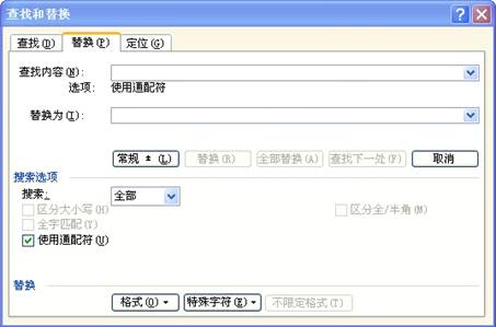 3、点“高级”按钮, 勾选“使用通配符”复选框;