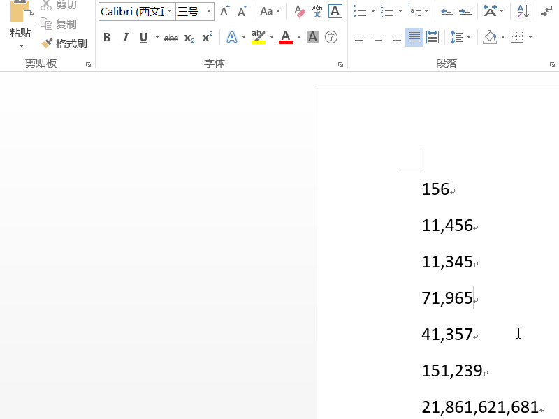 9、回到Word文本中,我们可以看到此时的数字就已经全部加上了千位分隔符了。