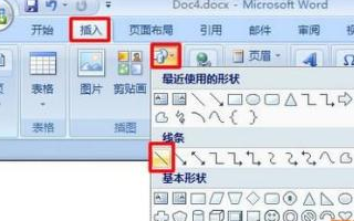 2、切换到【插入】选项卡,在【插图】功能选项卡中,单击【形状】按钮,在弹出的下拉列表中选择【直线】,这时鼠标光标变为十字指针,按住鼠标左键拖动即可在文档中画出直线。