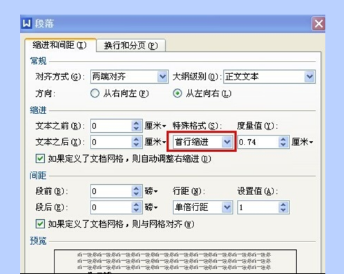 3、然后在【段落】的主界面面中,设置首行缩进操作,适度调节。