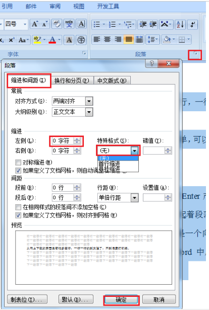 2、单击格式——段落,将特殊格式改成无,缩进:左字符改成0字符。
