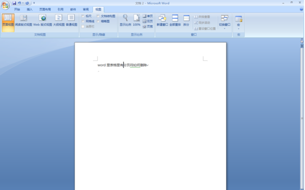 打开一个文档,分成好两页,当我们想删除分页符,但找不到这个分页符号,以WORD2007为例,点击视图