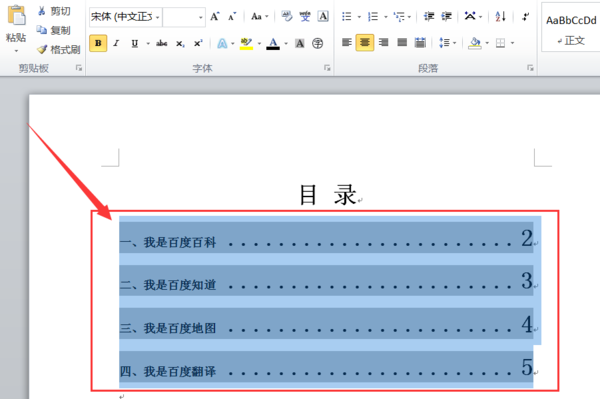 1、打开需要操作的WORD文档,使用鼠标选中目录文本。