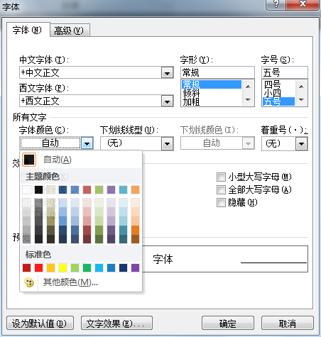 3、弹出字体对话框,在字体颜色处选择一种颜色即可,如图所示。