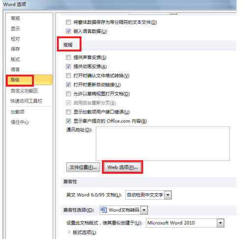 3.向下滚动到常规这一部分,然后点击Web选项。