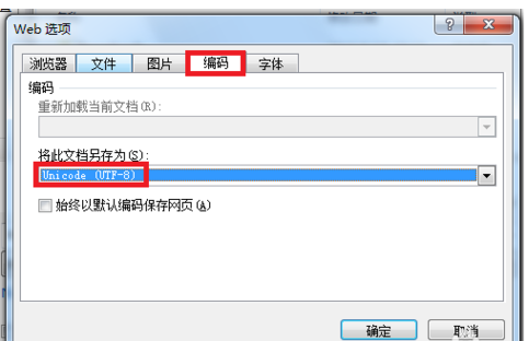 6.一样选择编码,将GB2312改成UTF-8,点击确定。