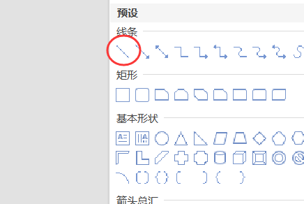 3、然后点击插入形状中的“线条”,选择第一个线条样式。
