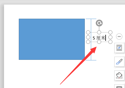 3、现在,我们要对此正方形进行自定义尺寸。比如,把正方形自定义为宽和高都是5厘米。此时,正方形还是保持在选中的状态,光标双击此正方形;