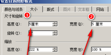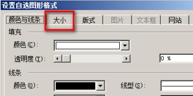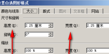 4、弹出操作框;在框的上方,点“大小”选项卡。