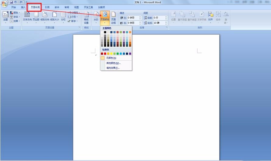 单击“页面布局”选项卡下的“页面颜色”按钮,就可以设置页面的底纹样式;