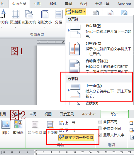 摘要与目录之间用同样的方法插入分节符.看图1.