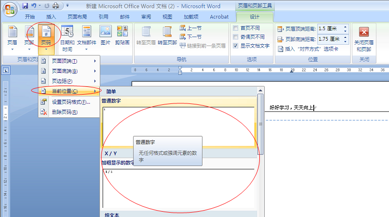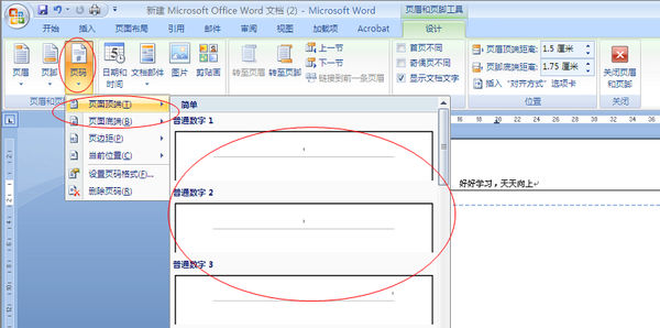 word 2007设置页码 页眉就没有了