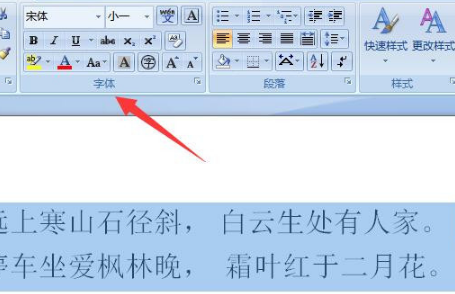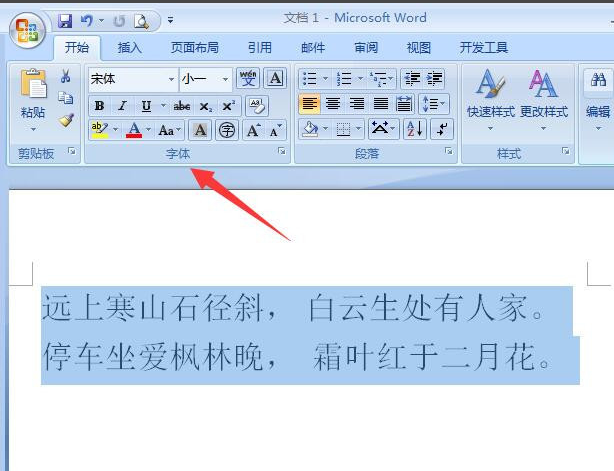 3、选中以后,我们找到“字体”的选项,这里面会找到具体的操作,如图所示。