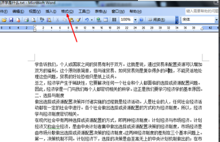 2、点击上方工具栏上的格式选项。如图所示。由于我们更改的就是文章的显示样式,所以也就是修改文章的格式。