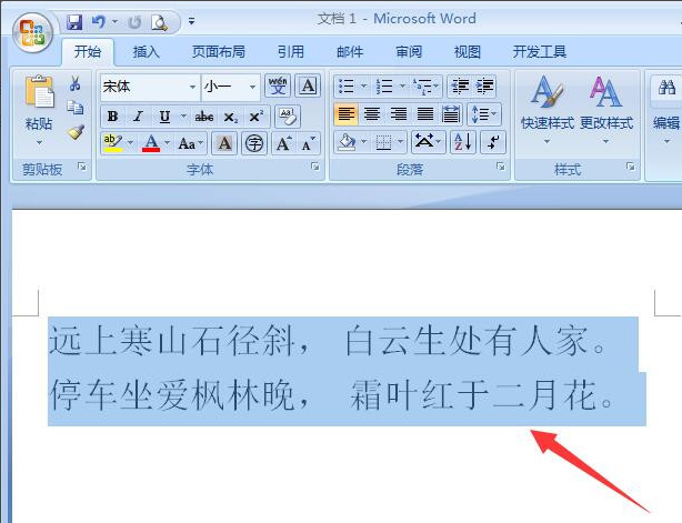 2、用鼠标直接选择这些想要变成空心字的文字