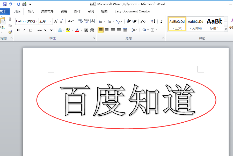 6、点击其中的“确定”,回去看到我们的字体已经空心了,说明我们的设置完成
