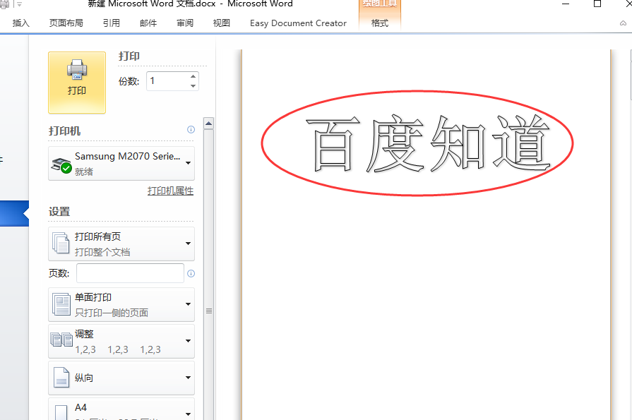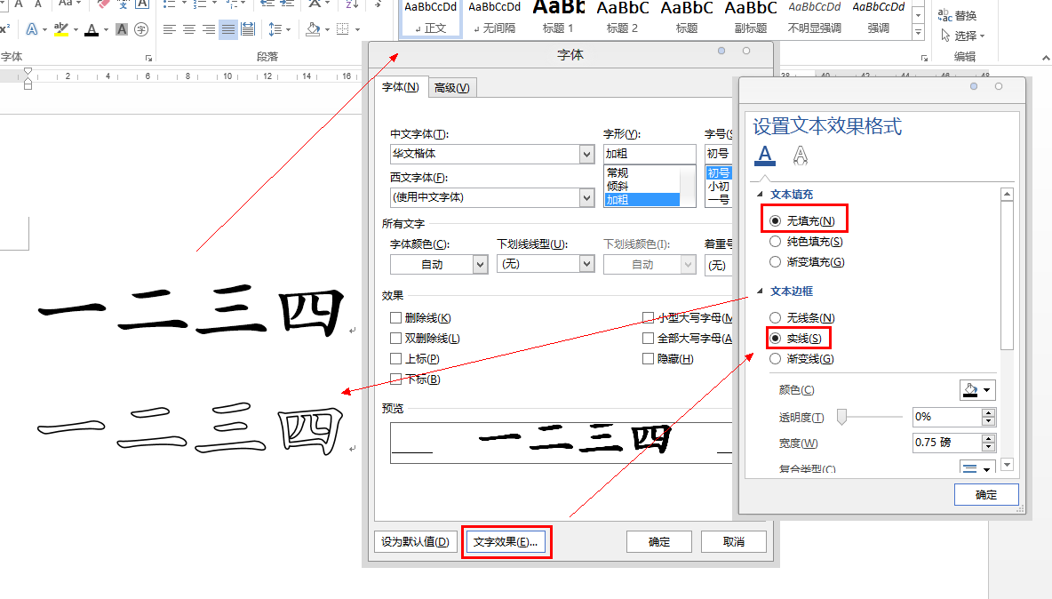 word如何打印空心字