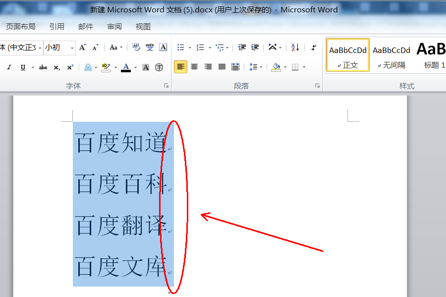 1、打开需要操作的WORD文档,在每一行末尾输入回车符,使每行独立成段,并选中段落文本。