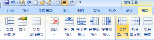4、选中第一行的三个单元格,单击表格工具布局----合并单元格;