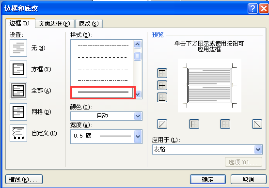 7、弹出边框和底纹对话框,选择边框选项卡,在样式处选择双线型即可,如图所示。