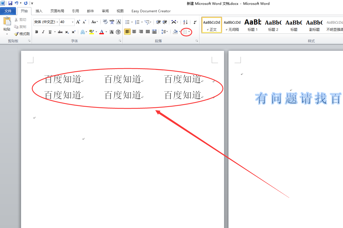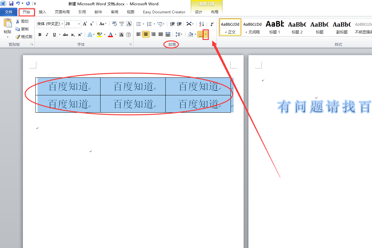 1、打开需要操作的WORD文档,选中表格,在开始选项卡找到“段落”,点击“边框”旁边的下拉按钮。