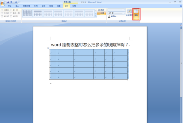 4、将橡皮擦光标移到要减掉的表格线上,鼠标左键,即可擦除。