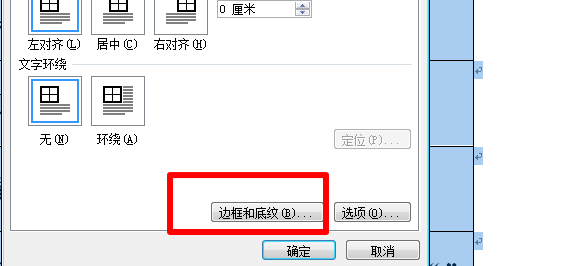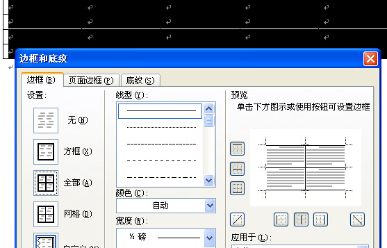 3 上图,选择“表格”选项卡,然后,点击对话框下面的“边框和底纹”,弹出如下图。