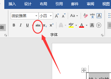3、再点击页面上方工具栏中的“开始”选项,找到“删除线”按钮。