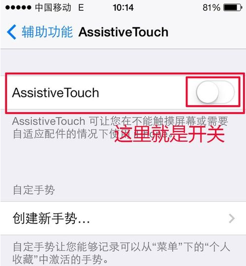 第四步:把“assistive touch”选项打开即可看到小圆点: