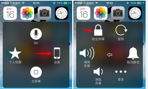 第五步:点击“assistive touch”小圆点,选择“设备”后,选择“锁定屏幕”即可一键锁屏。