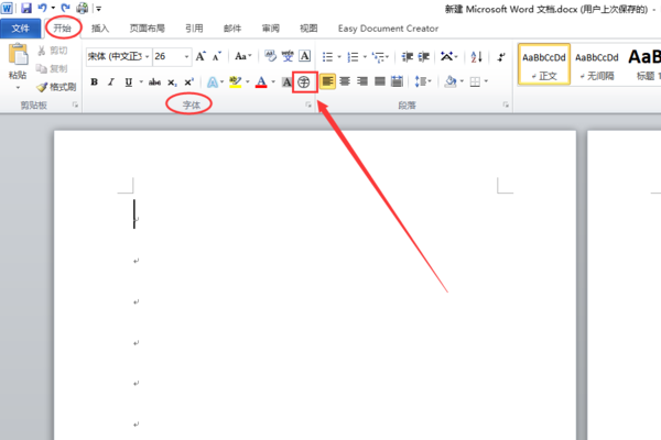 2.点击字体组里面的“带圈字符”图标,如下图红框所示;