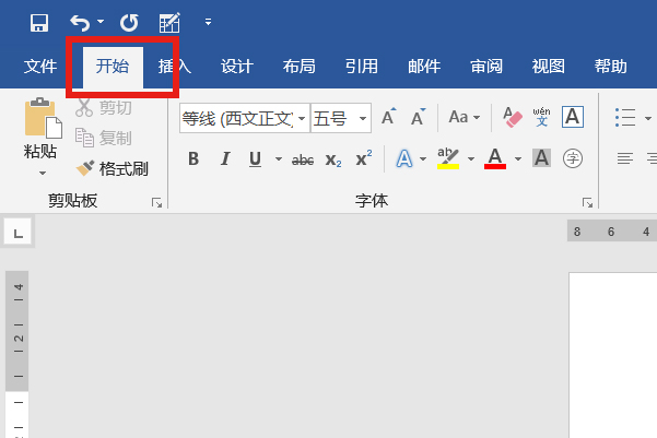 1.将光标置于要插入注脚的位置,点击上方菜单栏的“开始”,如下图红框所示;