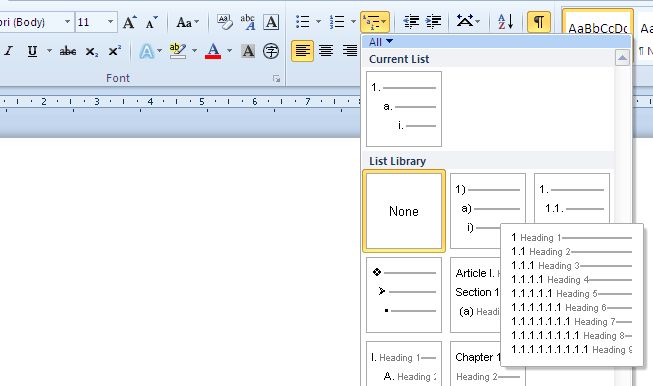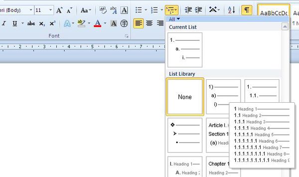 在"多级编号"里其中一个就是编号与大纲级别(Heading)相关联的.我的是2010,2007是一样的,如果你的版本是2003的话可以在'插入','项目与编号"中找一找.