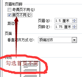 2、选择版式中间的首页不同选项,在其前面打勾,选择确定。