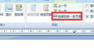 5、在上方的标题栏中,有一选项“同前节”处于选中状态点击取消该状态。