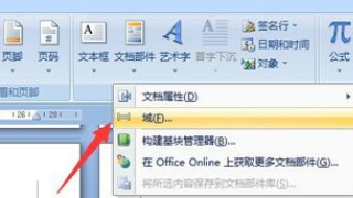 此外,还有一种情况,就是希望在不同的页面设置为同的页码的情况,或者输入有规则的内容时,我们可以借助“域”功能来实现。首先进入“页眉或页脚”编辑状态,切换到“插入”功能区,点击“文件部件”-“域”代码项。
