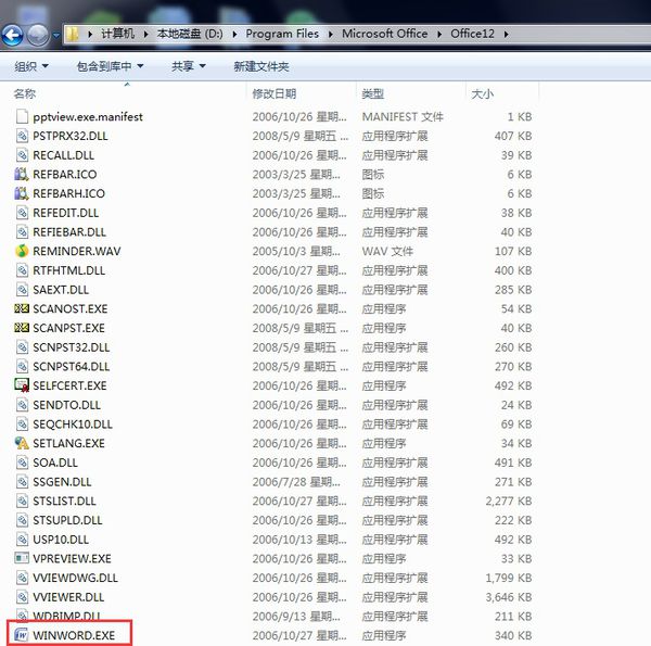 2、双击WINWORD.EXE,打开WORD软件。