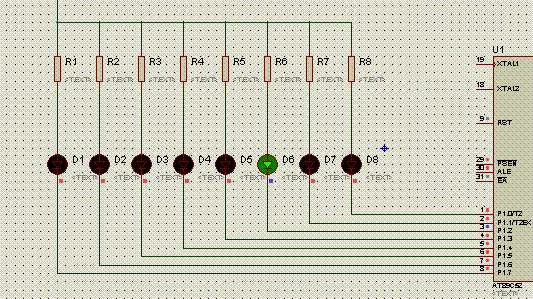 P1=_crol_(P1,1);//左移一位,点亮下一位LED